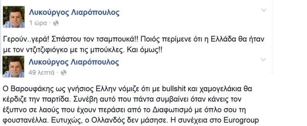 Ελλάδας. Μετά δε την μεγαλειώδη διαπίστωσή του οτι στον ευρωπαϊκό νότο «Ξοδεύατε τα λεφτά σε ποτά και γυναίκες», το πράμα έχει ξεφύγει και πλέον, μέχρι και "Γερούν οβοθρολυματικός" αποκαλείται!