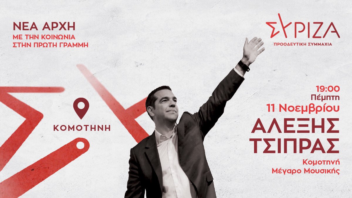 Ο πρόεδρος του ΣΥΡΙΖΑ - Προοδευτική Συμμαχία, Αλέξης Τσίπρας, θα πραγματοποιήσει περιοδεία υψηλού συμβολισμού στη Θράκη, την Πέμπτη 11 Νοεμβρίου σε μια ιδιαίτερα κρίσιμη καμπή για μια σειρά ζητημάτων με πρώτο τη καταστροφική διαχείριση της πανδημίας
